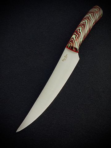 A striking carving knife with a funky multicoloured handle and a wrap around pattern. Razor sharp AEB-L stainless steel.