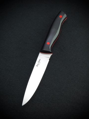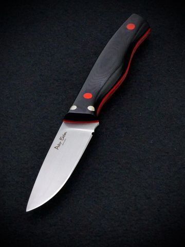 Secare deer knife made from Swedish Elmax steel. A smaller design of knife specifically for Roe and Muntjac size deer but fully capable of handling Red deer etc. Handled in black G10 with red G10 liners and finished with four pins , two red G10 pins and two high quality nickel silver pins. A stunning knife.